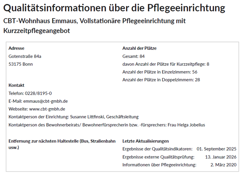 Zur Qualität der stationären Pflegeeinrichtung Emmaus.