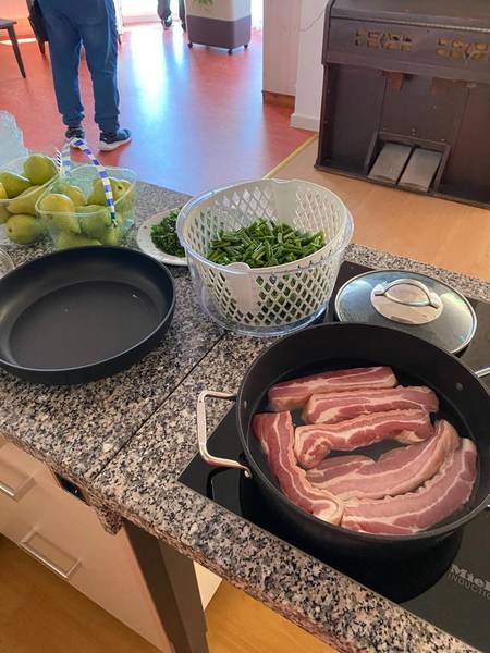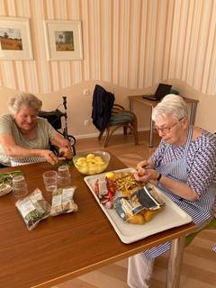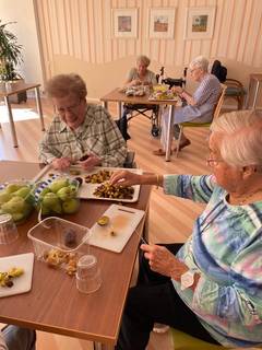 Letzte Woche war der Kochclub wieder aktiv und es wurde eifrig geschnippelt und gebrutzelt. Nach alten Rezepten unserer Bewohner werden gemeinsam die Lieblingsspeisen gekocht und dabei wird ein schönes Drei- Gänge Menü gezaubert. Im Anschluß wird der Tisch schön gedeckt und es wird zusammen gegessen und Pläne für die nächste Sitzung des Clubs geschmiedet.