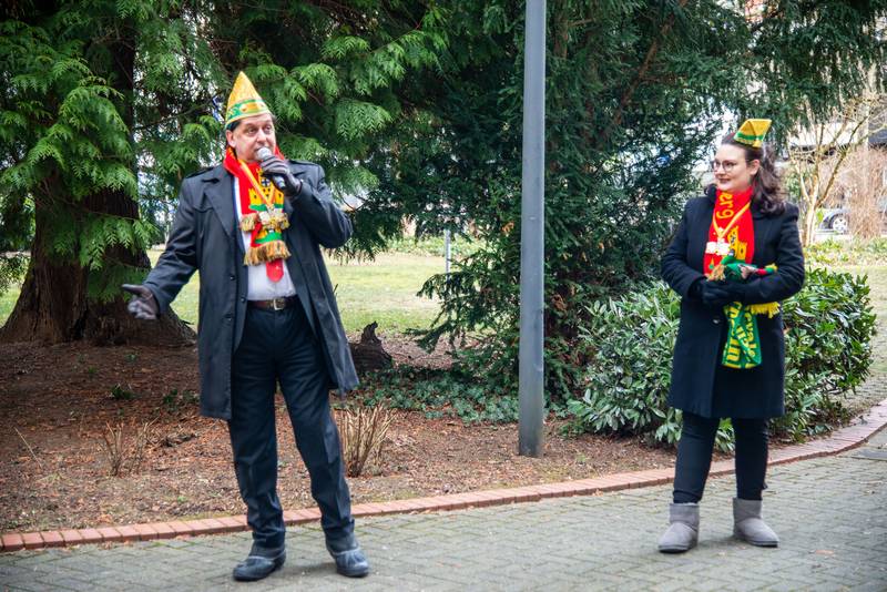 Am Karnevalssonntag erfreute der Besuch von Prinz Pete (Noppeney) und Godesia Alexandra (Theisen) unsere Mieter, die bei Sonnenschein und eisigen Temperaturen von den Fenstern und Balkonen aus das Godesberger Prinzenpaar gebührend empfingen. Dank der Organisation des Festausschusses Godesberger Karneval kam so auch in diesen Zeiten ein wenig Karnevalsstimmung in unser Wohnhaus. Die Musik von Willi Bellinghausen machte gute Laune für die närrische Zeit.