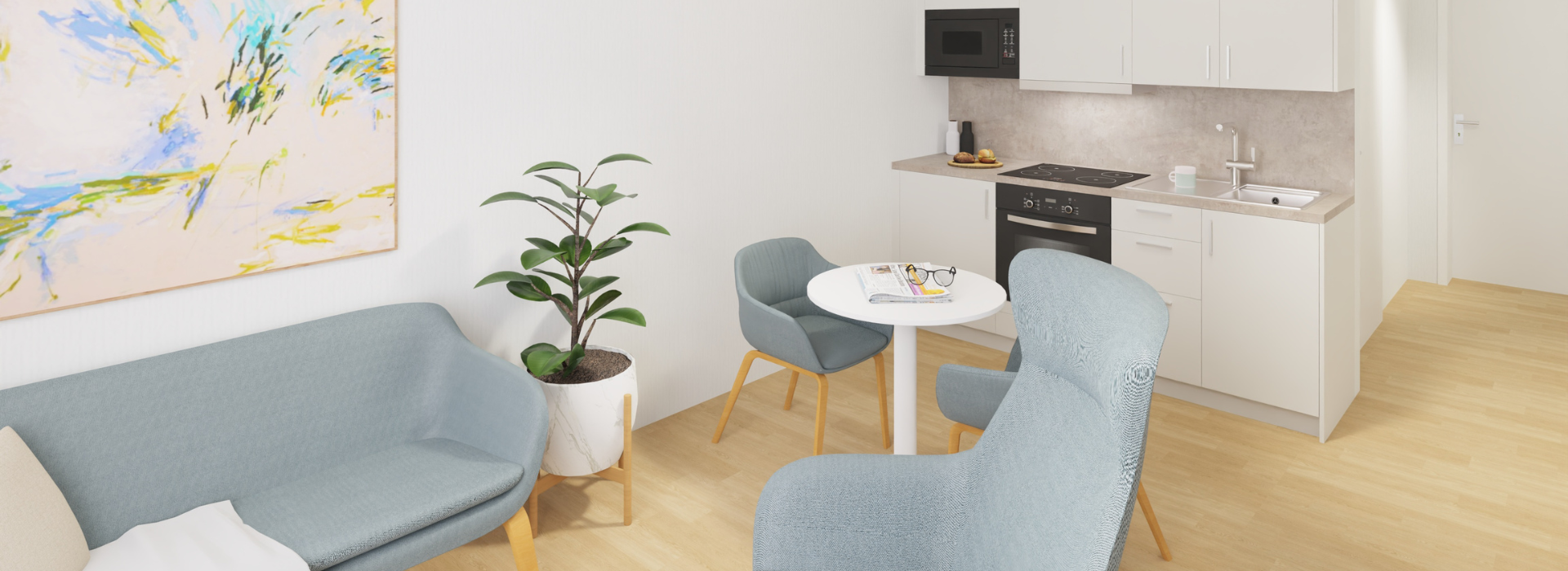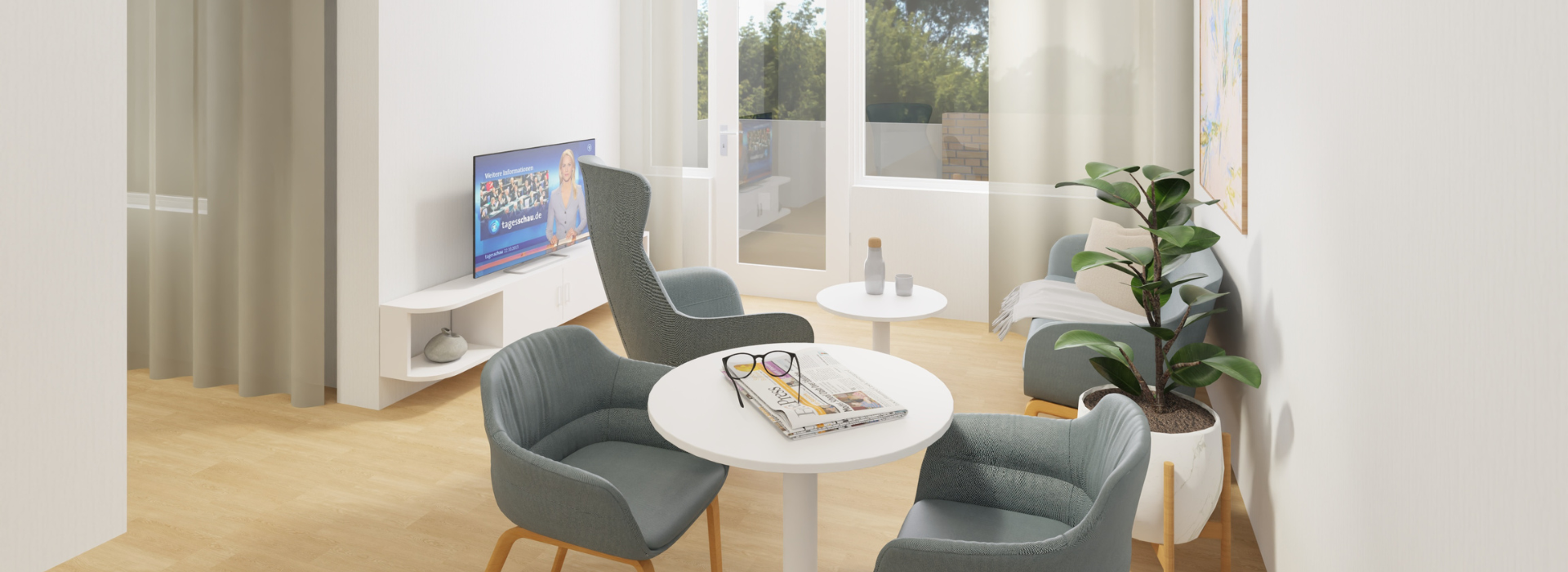 Für das Angebot „Wohnen mit Service“ entstehen derzeit 36 neue, komfortable 1-Raum-Zimmer, bzw. 2-Raum-Wohnungen, mit Anbindung an die Einrichtung und Leistungen des gesamten CBT-Wohnhauses Peter Landwehr. Erste Einzüge sind ab Juni 2026 möglich.